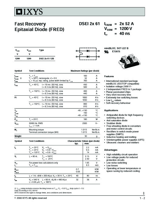 36,IXYS DSE1261-12B SOT-227B 60A 1200V